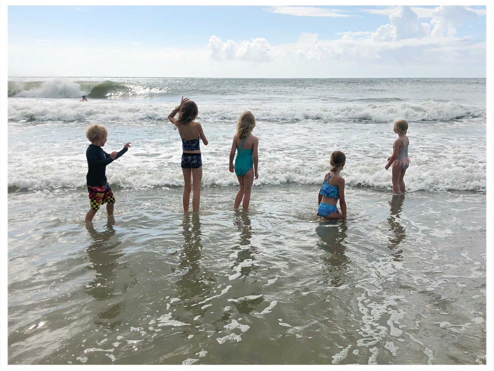 While I'm not a huge fan of swimming in the ocean, I would wade in, especially with a little buddy. Beach was a good sport, though, and would take the girls out deeper.